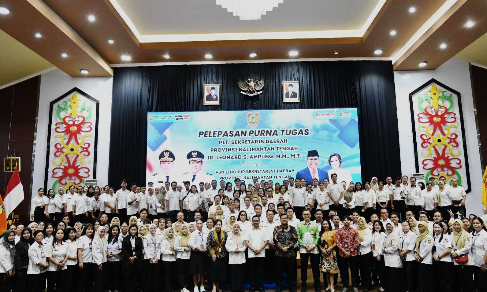 Palangka Raya - Momen haru menyertai pelepasan purnatugas Pelaksana Tugas (Plt) Sekretaris Daerah Provinsi Kalimantan Tengah, Leonard S. Ampung, yang resmi mengakhiri pengabdian sebagai aparatur sipil negara setelah 35 tahun berkarier.